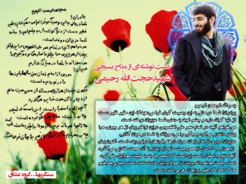 1 یک عکس نوشت و یک PDF از خاطرات شهید حجت الله رحیمی گذاشتم در ادامه که خیلی زیباست ..پیشنهاد دارم بخوانید..